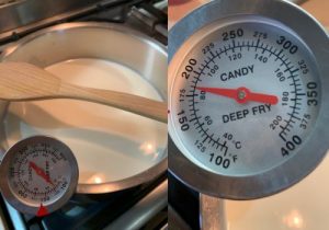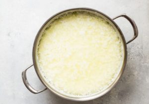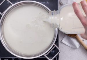 Slowly bring it up to approximately 85°C – or if you don’t have a thermometre keep heating until just BEFORE it boils – you will see little bubbles on the side. Do not Boil.